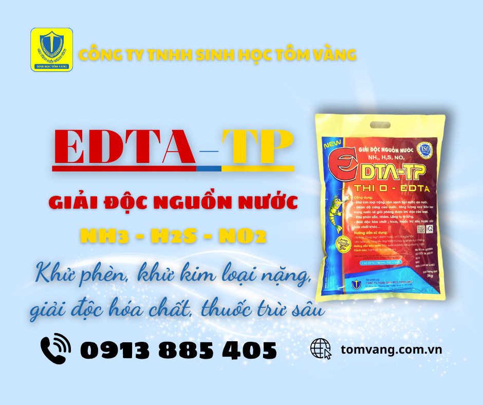 EDTA khử phèn là 1 sản phẩm hoàn hảo được phức hợp các loại muối và ethylene diamine tetra acetic acid hàm lượng đậm đặc để xử lý nước ao nuôi tôm, nước nuôi cá cảnh. Có tác dụng khử phèn clo trong nước nuôi thủy sản và giảm kim loại nặng trong nước.