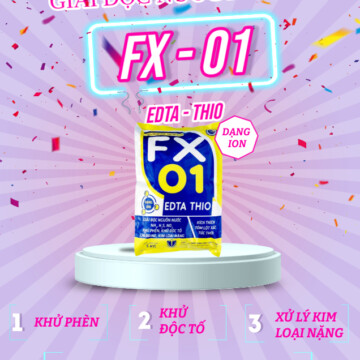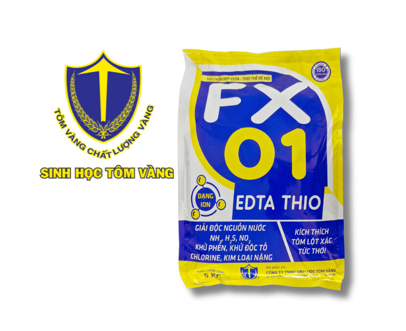FX-01 Siêu hỗn hợp EDTA-THIO thế hệ mới khử phèn là 1 sản phẩm hoàn hảo được phức hợp từ Sodium thiosulfate và ethylene diamine tetra acetic acid để xử lý nước ao nuôi tôm, nước nuôi cá cảnh. Có tác dụng khử phèn clo trong nước nuôi thủy sản và giảm kim loại nặng trong nước, lắng tụ các chất lơ lửng, giảm stress cho tôm cá, kích thích tôm lột xác tức thời.