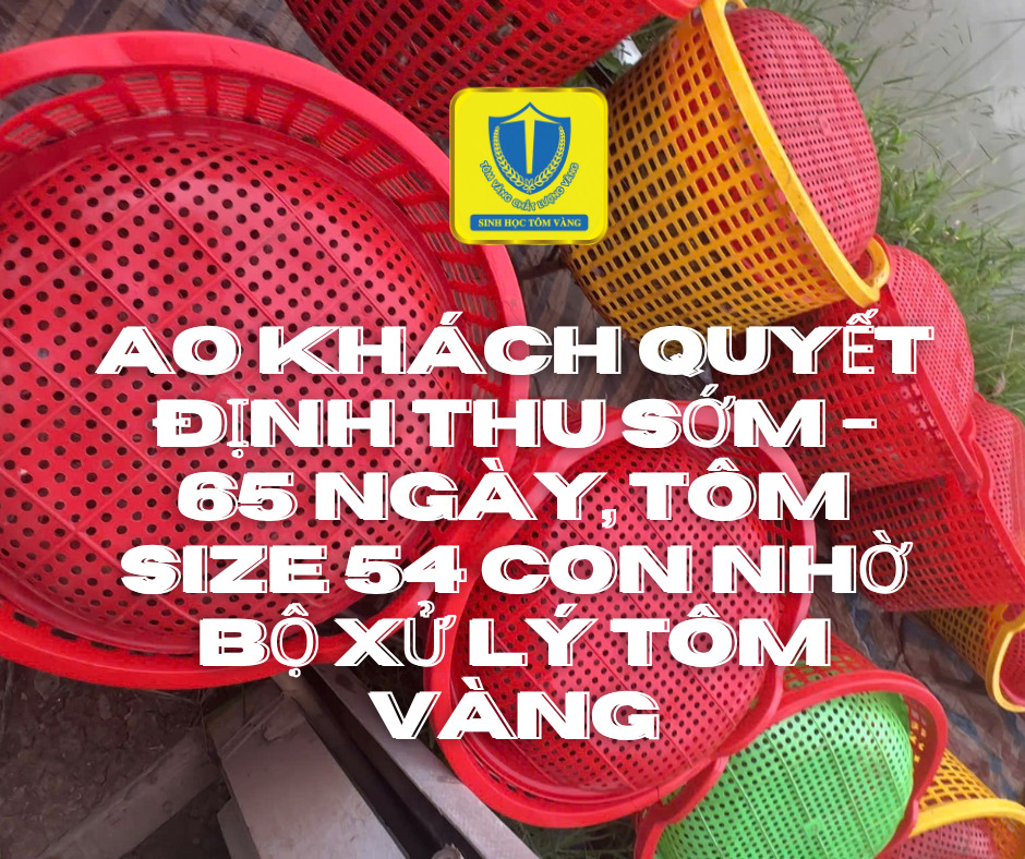 Ao khách quyết định thu sớm – 65 ngày, tôm size 54 con nhờ bộ xử lý Tôm Vàng Sau 65 ngày nuôi, ao tôm của khách hàng Sinh Học Tôm Vàng đã đạt kết quả khả quan với tôm
