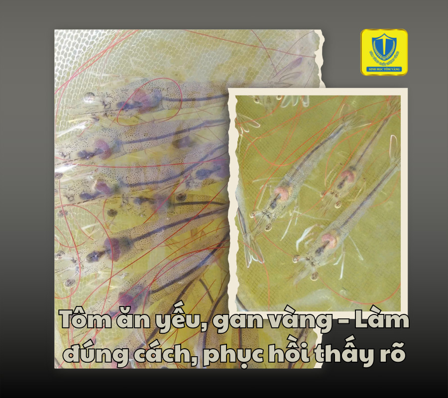 Tôm ăn yếu, gan vàng – Làm đúng cách, phục hồi thấy rõ Một anh nuôi tôm ở miền Tây chia sẻ, trong lần đi kiểm tra ao cách đây vài hôm, anh phát hiện đàn tôm có dấu hiệu