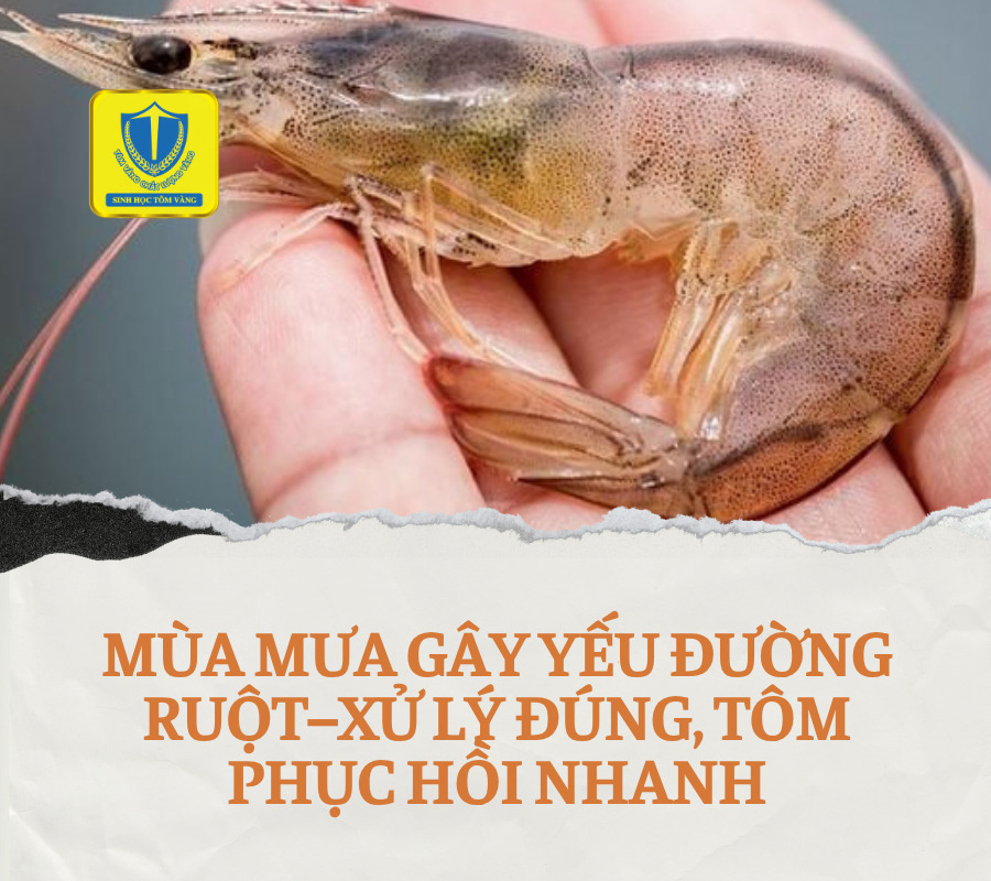 MÙA MƯA GÂY YẾU ĐƯỜNG RUỘT – XỬ LÝ ĐÚNG, TÔM PHỤC HỒI NHANH Mùa mưa là thời điểm dễ gây yếu đường ruột ở tôm, nhất là ở những ao đất. Nhiều bà con chia sẻ rằng chỉ sau