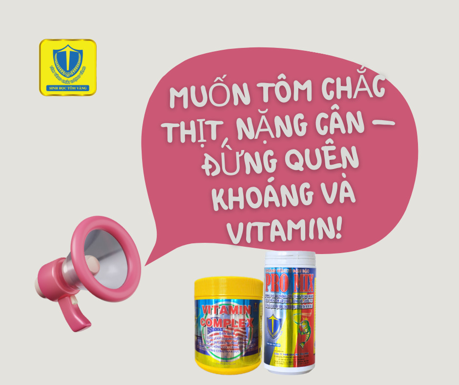 Muốn tôm cứng vỏ, chắc thịt – đừng quên bổ sung vitamin và khoáng Tôm Vàng! Trong suốt quá trình nuôi tôm, việc bổ sung vitamin và khoáng chất là yếu tố quan trọng quyết định đến sức khỏe, tốc