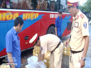 Theo đó, khoảng 16 giờ ngày 15.12, trong lúc tuần tra, kiểm soát trên tuyến Quốc lộ 1 (đoạn thuộc P.1, TX.Giá Rai), lực lượng Phòng CSGT phối hợp với Phòng Cảnh sát kinh tế Công an tỉnh Bạc Liêu tiến hành kiểm tra đột xuất xe khách BS 69F – 000.37, do tài xế Nguyễn Văn Nhàn (47 tuổi, ở tỉnh Tiền Giang) điều khiển, chạy theo hướng từ tỉnh Cà Mau đi TP.Đà Nẵng.