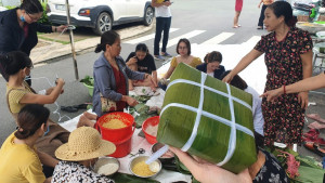 Chị Lê Huyền Trang (con gái bà Loan) cho biết, lúc đầu mẹ chị dự tính làm 500 chiếc bánh chưng. Nhưng khi kêu gọi trên mạng xã hội thì rất nhiều người gọi điện, nhắn tin muốn chung sức mang lá, nếp, thịt heo, đậu xanh… đến và đến gói cùng