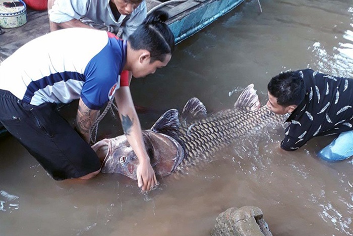 Ngư dân ở cầu Cái Gia Lớn (xã Tân Hội- TP Vĩnh Long) giăng lưới trên sông Tiền gần cầu Mỹ Thuận tình cờ bắt được cá hô vàng hơn 125kg và bán được trên 300 triệu đồng. Đây là