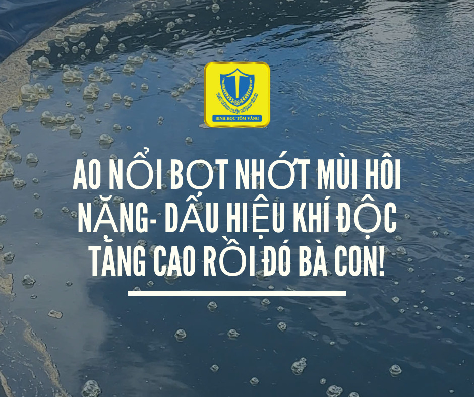 Trong quá trình nuôi tôm, đặc biệt là ở ao bạt thả thẳng, tình trạng nước ao nổi bọt nhớt, váng bọt và mùi hôi nặng là dấu hiệu khí độc NH₃, NO₂, H₂S tăng cao. Đây là nguyên nhân