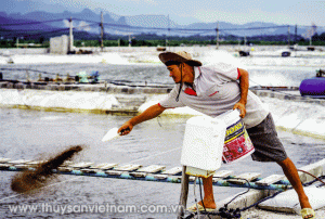 Thức ăn chiếm tới 50 – 55% chi phí sản xuất trong nuôi tôm. Một mặt, tôm cần có thức ăn để đủ nguồn dinh dưỡng cho hoạt động thường ngày và phát triển. Mặt khác, không phải 100% thức ăn đưa vào môi trường sẽ được tôm sử dụng. Chỉ có một phần các chất dinh dưỡng có trong thức ăn được chuyển hóa thành mô thịt của tôm nuôi. Phần còn lại ở dưới dạng thức ăn thừa hoặc chất thải của tôm, khiến môi trường nước dễ bị ô nhiễm, phát sinh nhiều bất lợi trong quá trình nuôi hoặc gây ô nhiễm cho môi trường xung quanh khi chất thải nuôi tôm được thải bỏ vào cuối vụ. Thức ăn thừa khi phân hủy sẽ tiêu tốn ôxy hòa tan. Càng về cuối vụ nuôi, lượng thức ăn cho xuống ao mỗi ngày càng lớn thì nhu cầu ôxy của ao càng cao. Công suất của toàn bộ hệ thống quạt nước hoặc sục khí phải được nâng lên tương ứng theo tỷã lệ 12 kg thức ăn/CV.