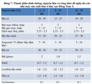 Hiện nay, việc thiết lập công thức thức ăn cho tôm còn đặt ra nhiều thách thức cho các nhà dinh dưỡng; bởi, hiệu quả tăng trưởng của tôm không chỉ phụ thuộc vào nguyên liệu, chất lượng dinh dưỡng thức ăn mà còn là công nghệ sản xuất của các nhà máy, trình độ quản lý trại nuôi và hệ thống nuôi tôm ở các mức độ (quảng canh, bán thâm canh hay thâm canh) khác nhau.
